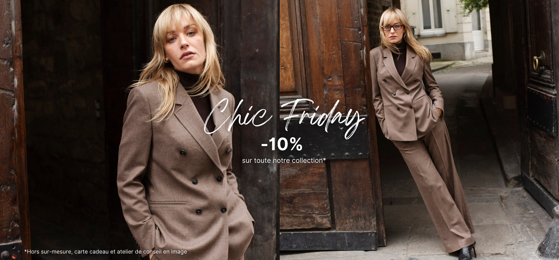 Sur notre site web, n'hésitez pas à prendre le temps de découvrir nos nombreux articles et ensembles. Ne manquez pas notre sélection de vestes et pantalons pour composer l’ensemble tailleur qui vous convient et l'ajouter dans votre garde-robe.