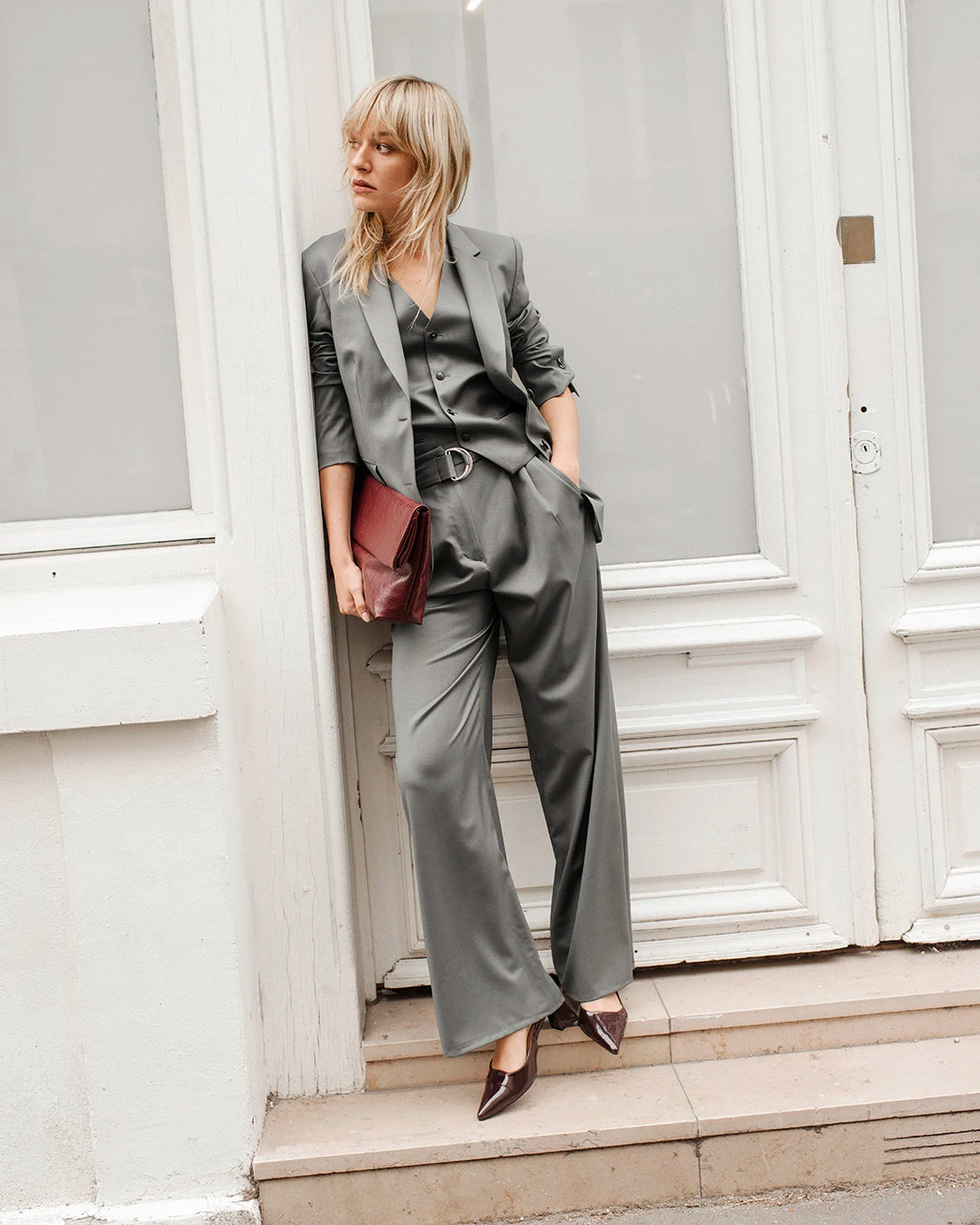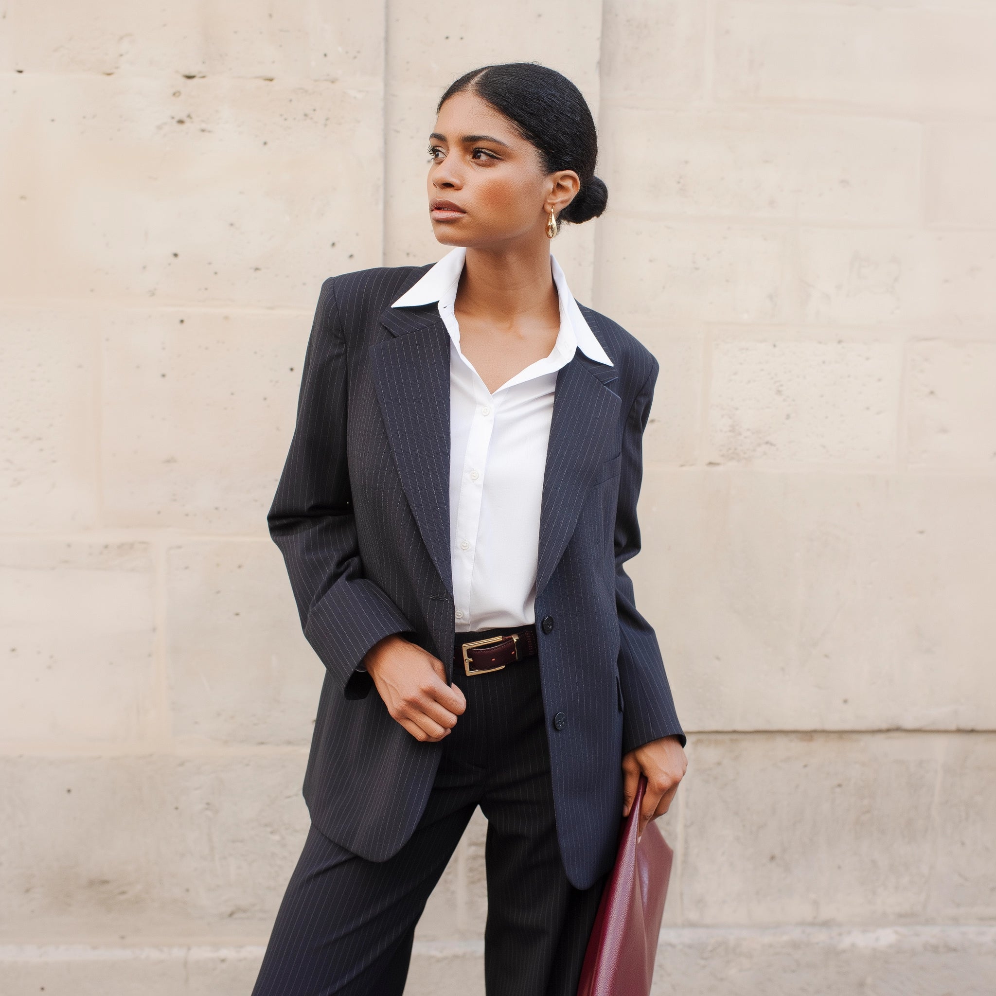 Astuce mode : Associez votre tailleur avec un top en dentelle ou un bustier pour un équilibre parfait entre structure et féminité.