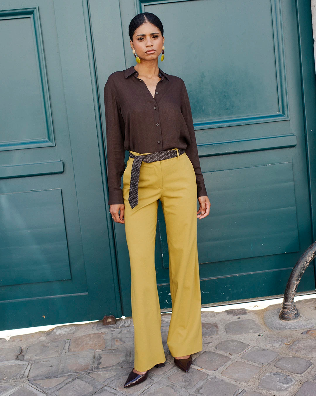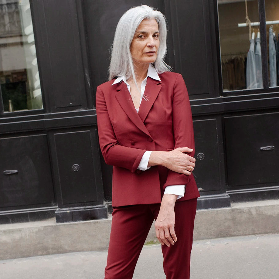 Ici aussi, tout dépend du style que vous souhaitez créer. Une veste blazer / veste de tailleur peut s'assortir parfaitement avec un pantalon cigarette pour un look structuré et ajusté, ou avec un pantalon large pour une allure à la fois fluide, moderne et décontractée. Nous proposons d'ailleurs d'autres types de coupes (carotte ou coupe droite par exemple) pour encore plus de looks.