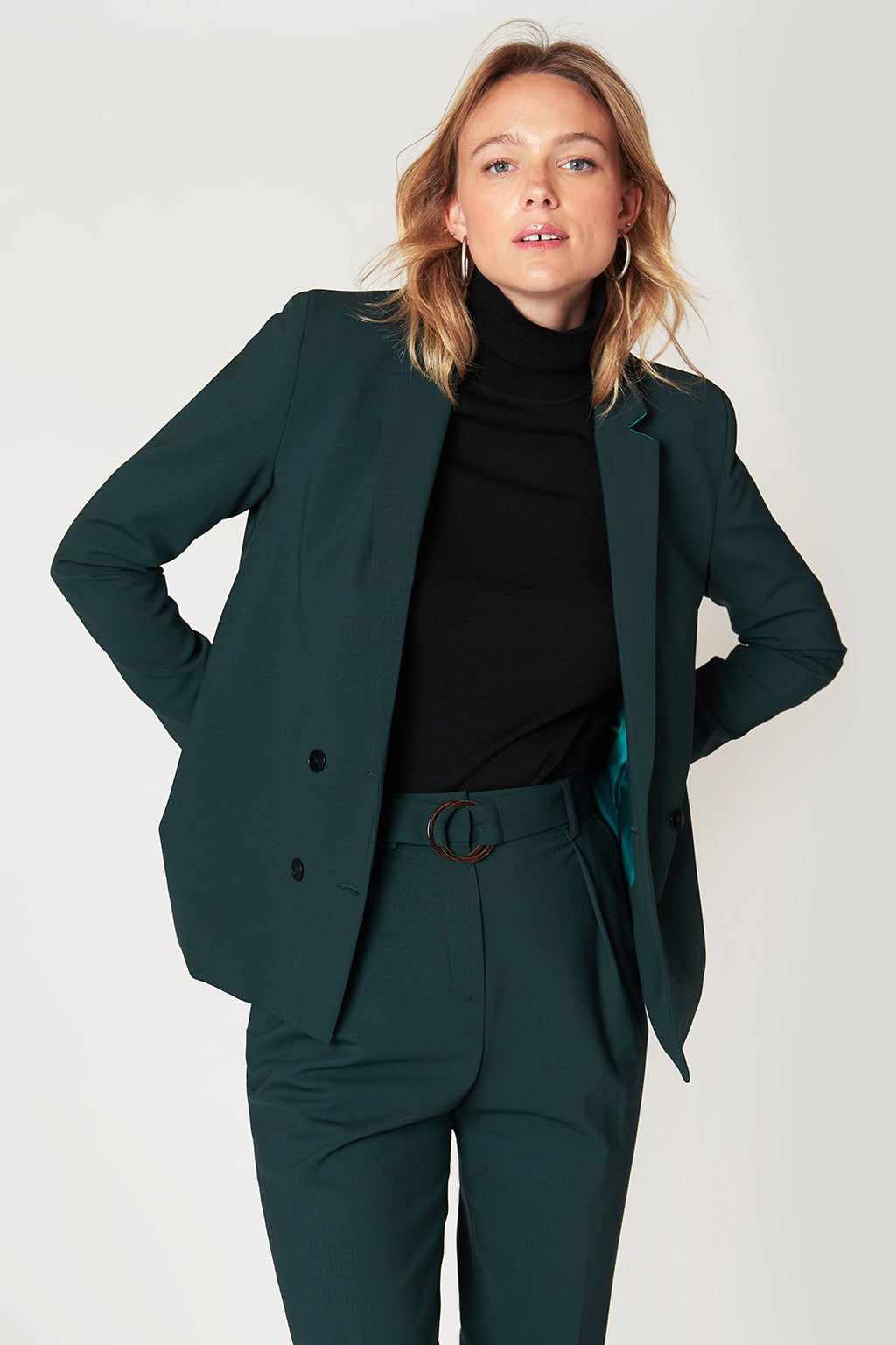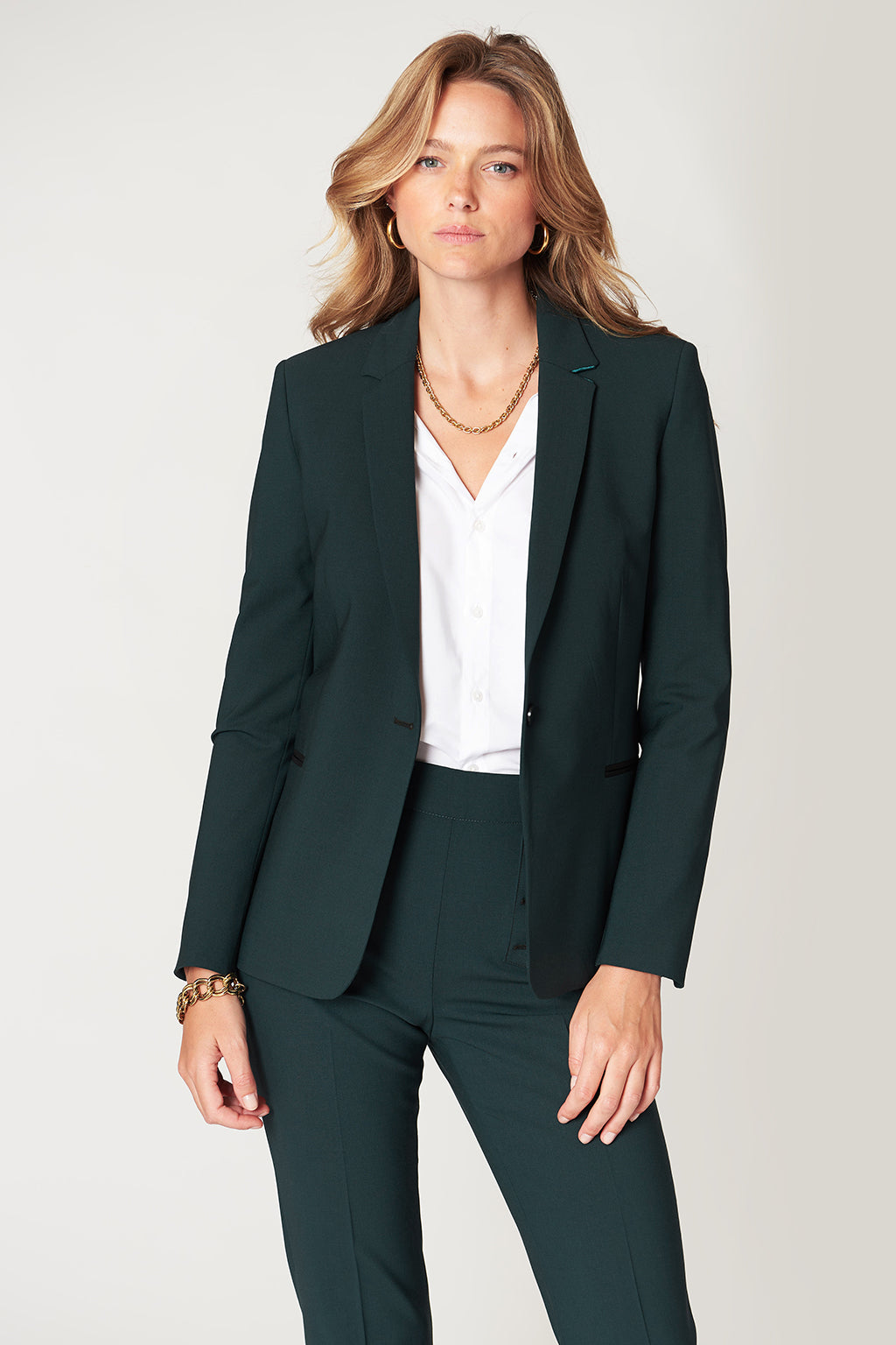 Cintrée et élégante, la veste blazer est intemporelle et a un tombé parfait sur la cambrure du dos et les fesses.