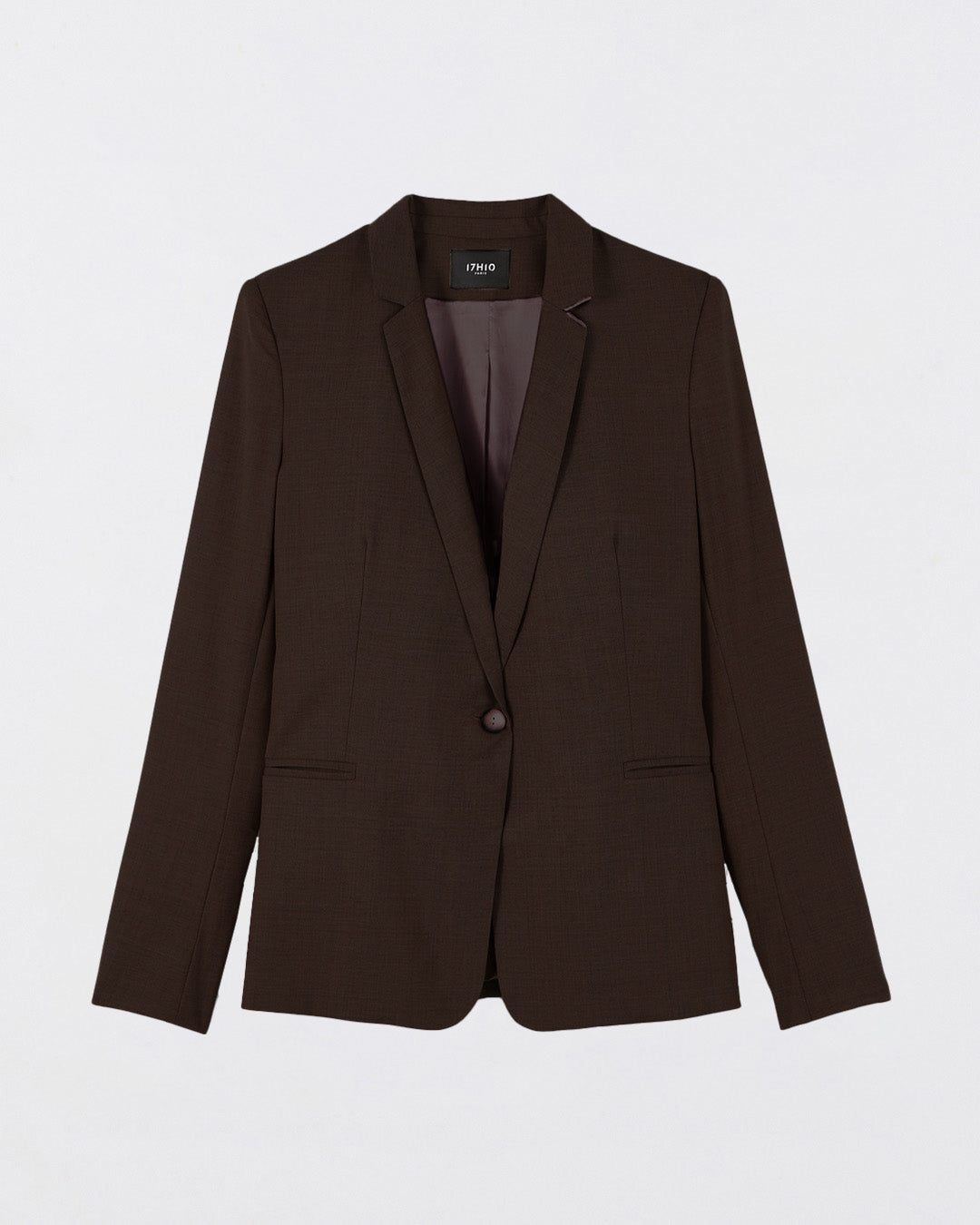 En tailleur marron 17H10, veste Moscou, elle adopte une silhouette structurée et raffinée. La couleur chaude et la coupe moderne reflètent à la fois élégance, style affirmé et accessibilité, en parfaite harmonie avec son univers mode et lifestyle.