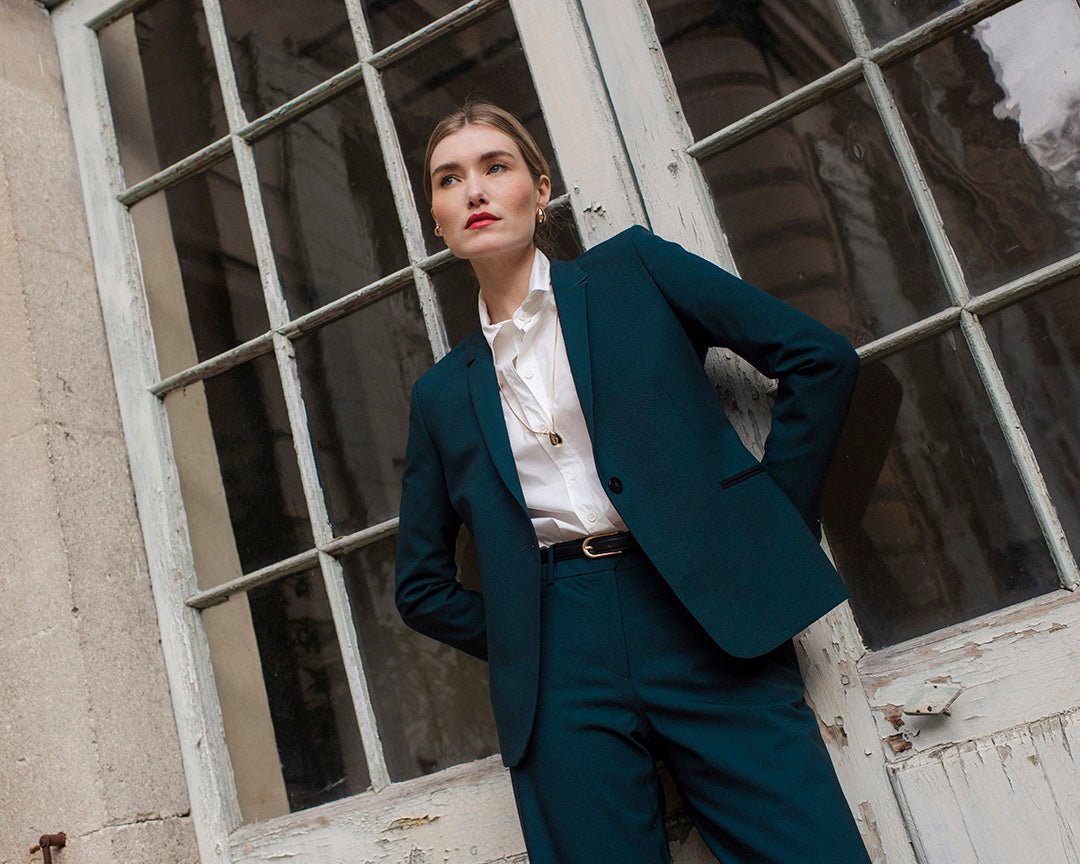 A suit jacket remains an essential. If you prefer to play it safe, opt for a navy blue suit. It goes equally well with heels or sneakers, depending on your company's dress code and professional occasions.