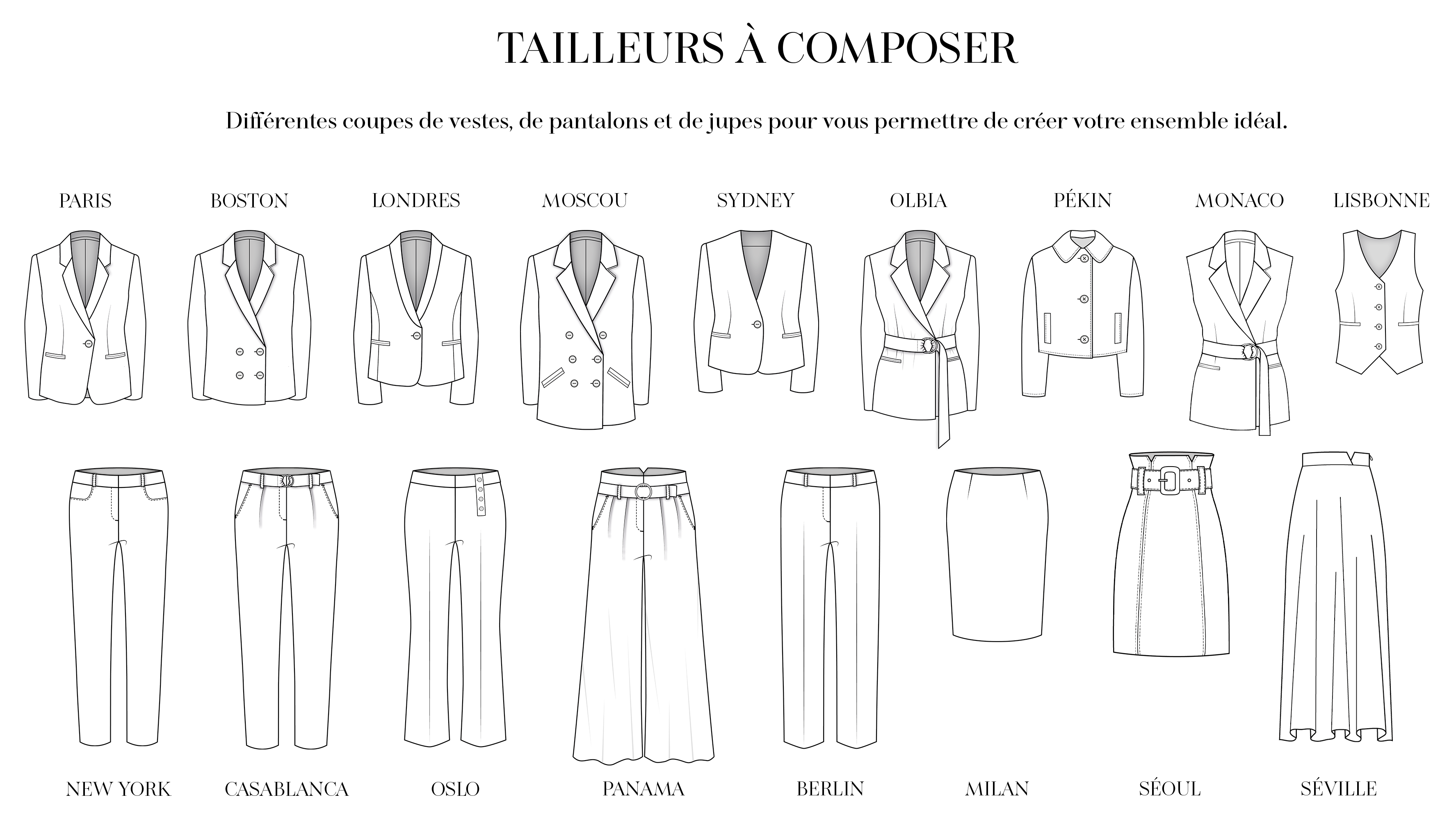 We borrow tailoring essentials from the men's wardrobe: wool cloth, noble materials, fine finishing, comfort, travel suits and interior pockets, and offer them to women. Resolutely inclusive, our models are designed for all morphologies, with perfectly studied cuts and colors.