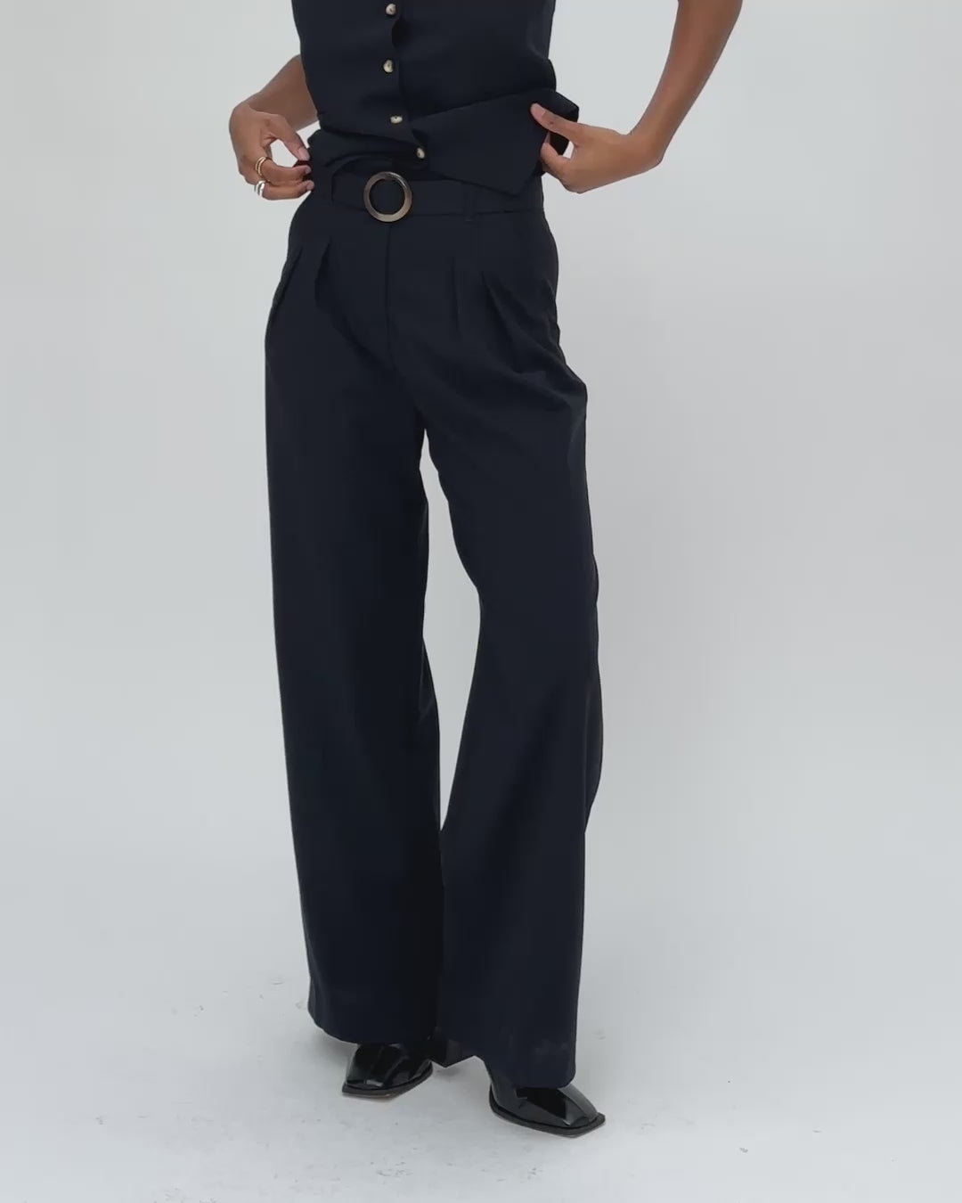 - Palazzo cut, very wide leg