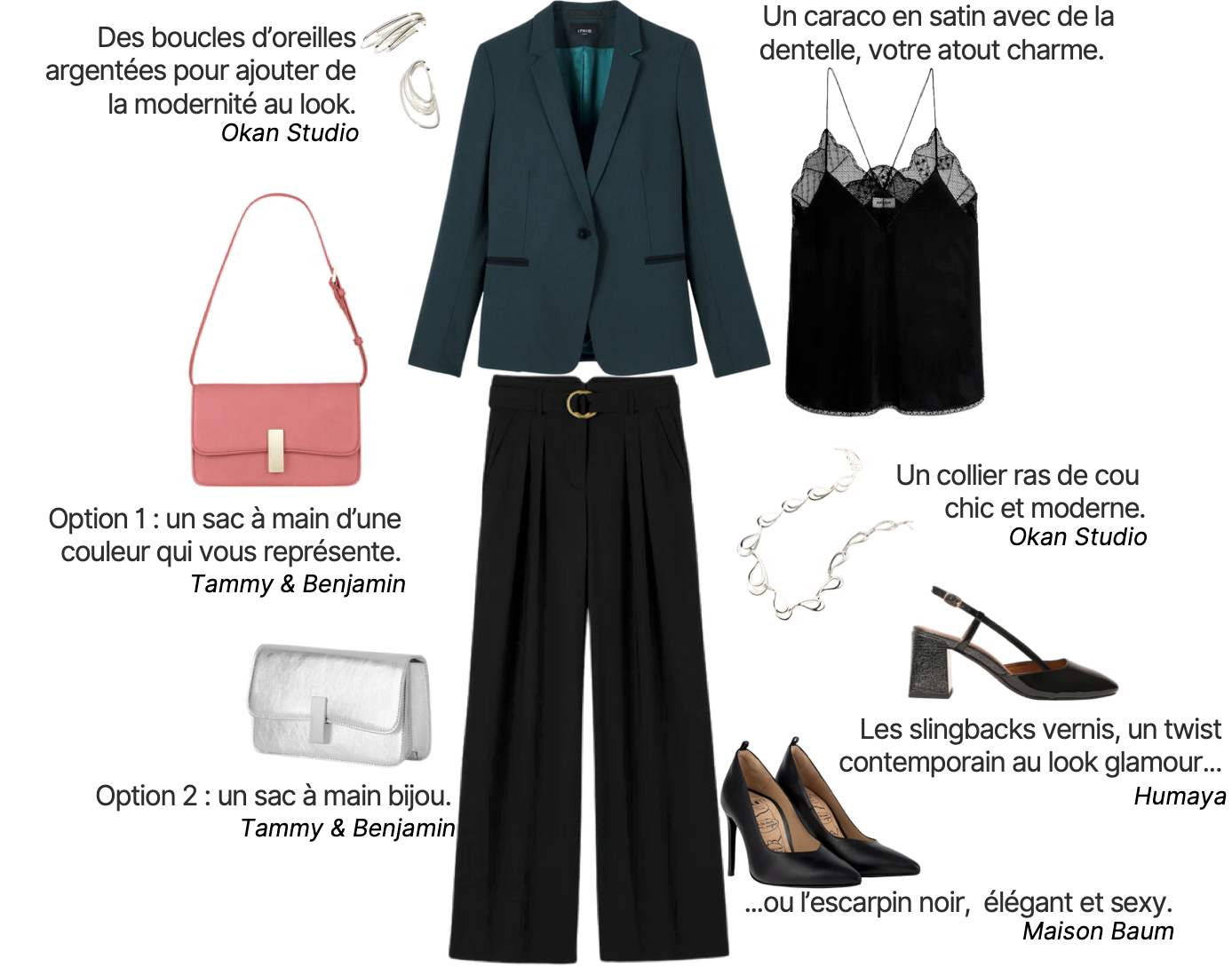 Le tailleur se modernise et se réinvente ! Il est versatile et se porte en plein d’occasions comme un dîner, une journée de bureau, une sortie entre amis, une cérémonie… Accessoirisez votre tailleur et amusez-vous à créer des looks aussi bien formels que glamour ou décontractés !