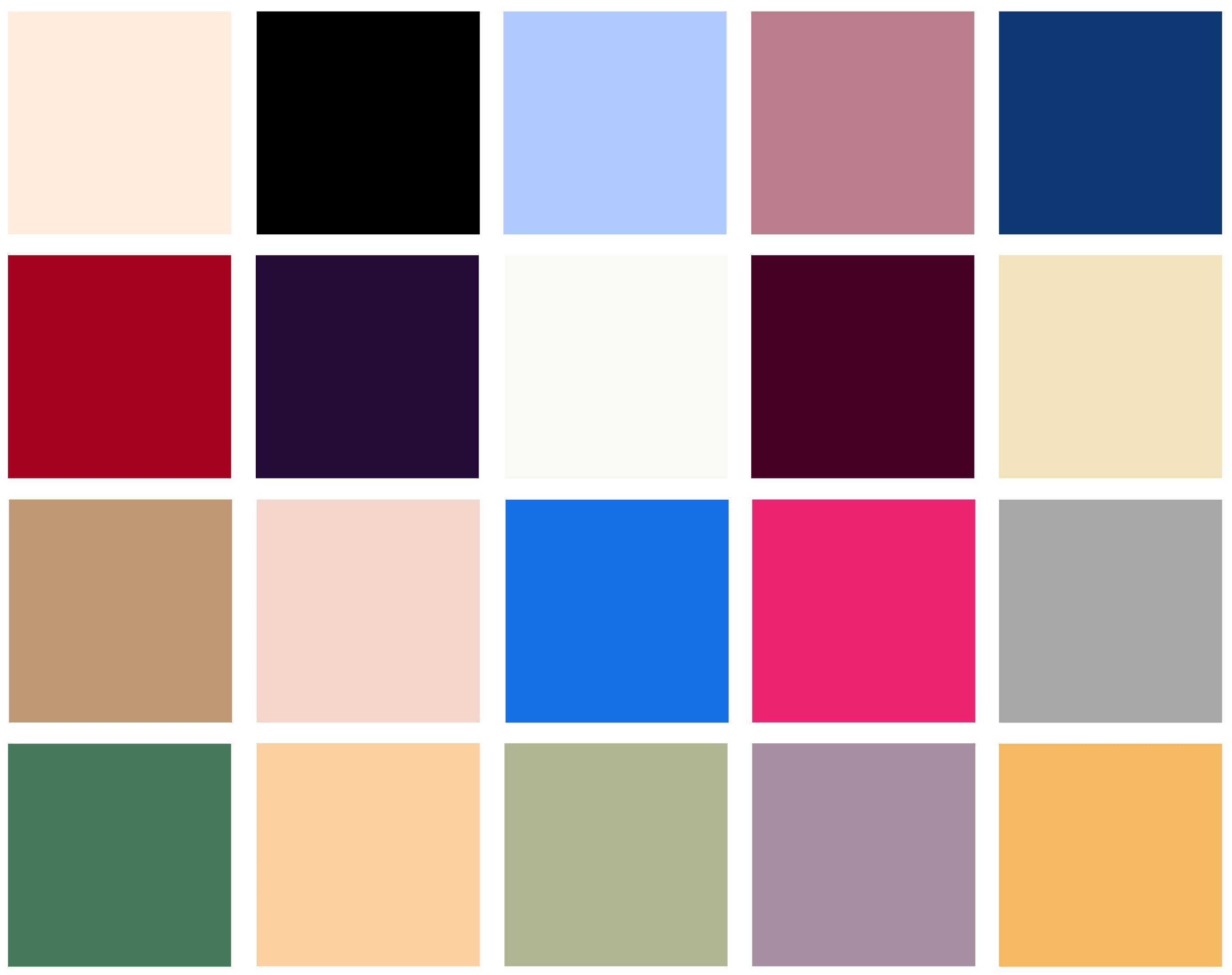Voici une palette avec les couleurs que nous vous invitons à assortir à votre tailleur